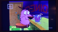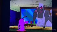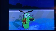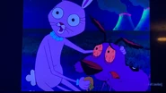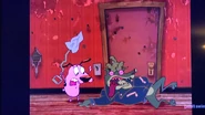 - Whenever Courage is thinking about Muriel and Eustace, only Eustace's lower body is shown. During Courage's final thought bubble, he only rescues Muriel from Kitty's mouth, despite that Eustace was also devoured by the Mask in one of the previous bubbles.