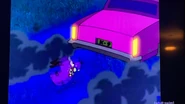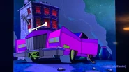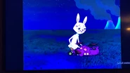 Kitty escapes the room by climbing out the window and begins searching for her stolen toy mouse, who correctly assumes was snatched by Courage. Courage soon finds Bunny who was scared of him for being a dog until she sees her gift to Kitty. Courage then saves her from Mad Dog and get involved in a high-speed chase as they bolt towards the train. To rescue Bunny from being run over, Courage jumps into Mad Dog's car and accidentally drives onto the railroad tracks. Mad Dog gets hit by an Amtrak passenger train, but he survives with injuries, and Courage safely survived.