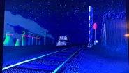 - Although the train in this episode is powered by a steam engine, it has an air horn. This type of engine is based on a New York Central J-3A Dreyfuss Hudson, while the diesel horn sound effect is from Sound Ideas.